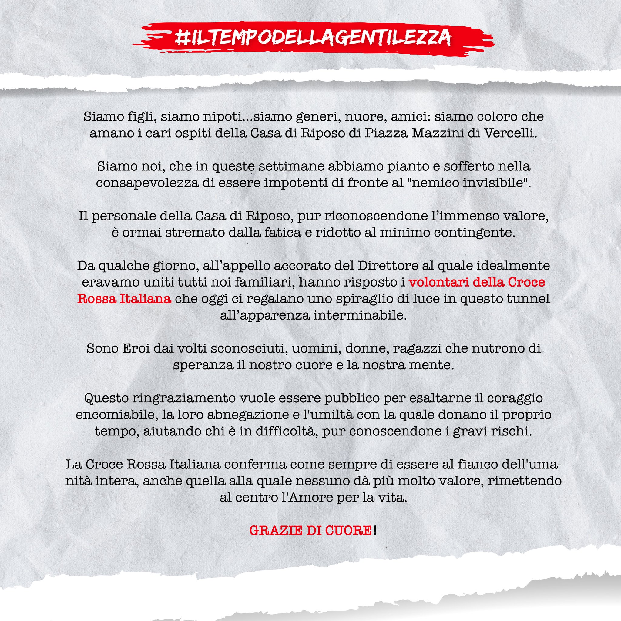 Lettera di ringraziamento al personale casa di riposo